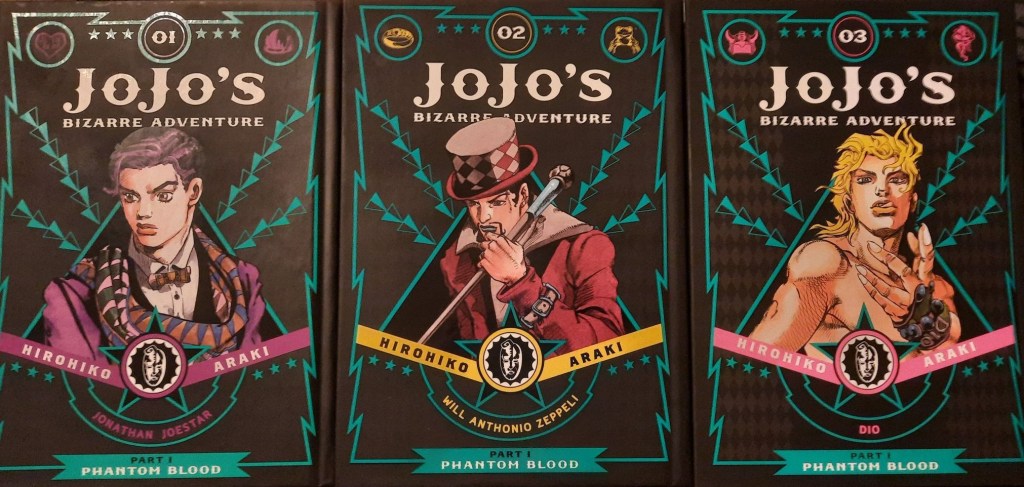 As the title says, after many years of reading manga I started on the legendary Jojo series. Starting right at the beginning with reading the whole of Part 1: Phantom Blood. For those that don’t know Jojo’s Bizarre Adventure is one of the longest running manga series of all time, with 131 volumes so far, split into 8 parts, with a 9th on the way. This is one of those series that I’ve known about for a very long time, but haven never actually read, mainly due to the length, and I didn’t really know anything about it, apart from that it was supposed to be weird.