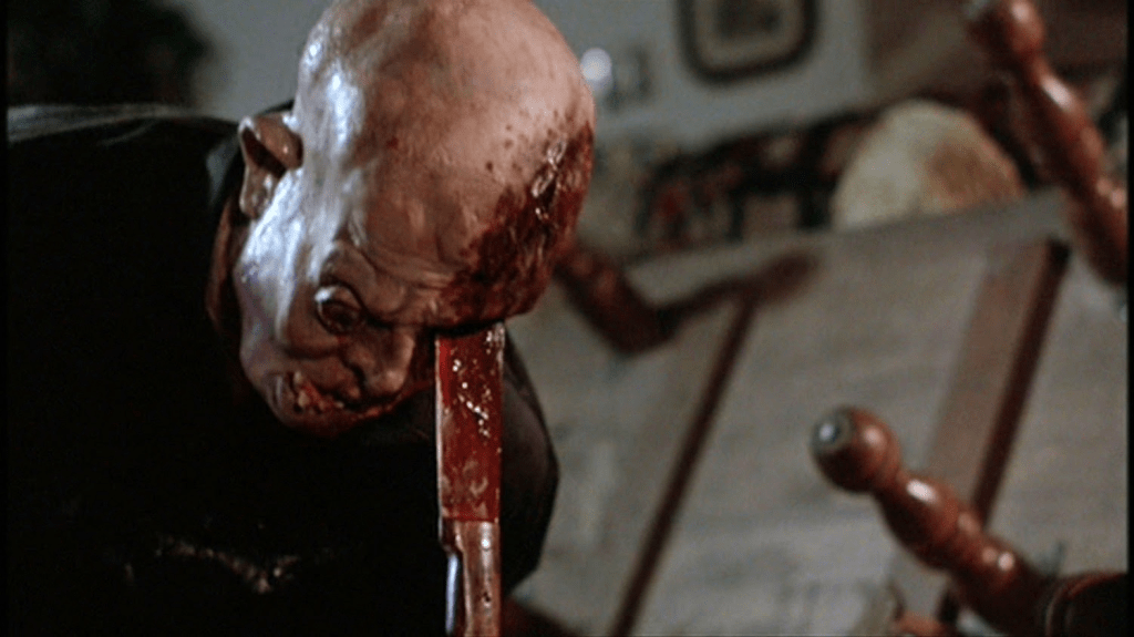 The effects are a strange one. On the one-hand they’re really well done, especially when you watch some of the special features that shows them slowed down, but during the film it’s often hard to make out what’s happening. They’re quick, and before you really know what’s happening they’re over. Tom Savini re-joined the series to help with he effects, wanting to give an end to Jason and he does just that. While every effect seems to happen at lightning speed, Jason’s death is slow and brutal. It’s the best moment of the film and the most blood curdling. One of the highlights of the series for sure.