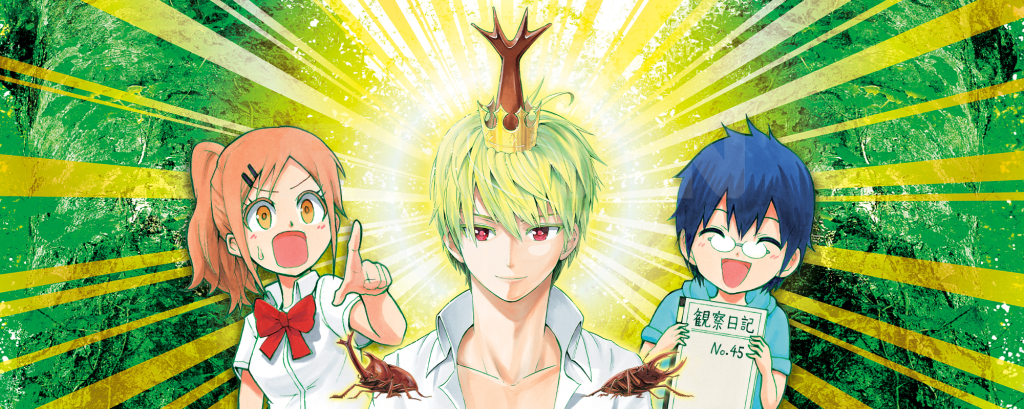 Moriking is a very strange manga that’s a lot to wrap your head around, so bear with me. Shota gets a pet rhinoceros beetle that he names Moriking. When Moriking starts to grow he changes into an adult human with a horn on his head and wings/shell on his back. So not only does does Shota now have a pet that looks like a human, but is a beetle, Moriking is also a potential king of the forest. Throughout the manga series, he competes with other human looking bugs that also want to become king of the forest.