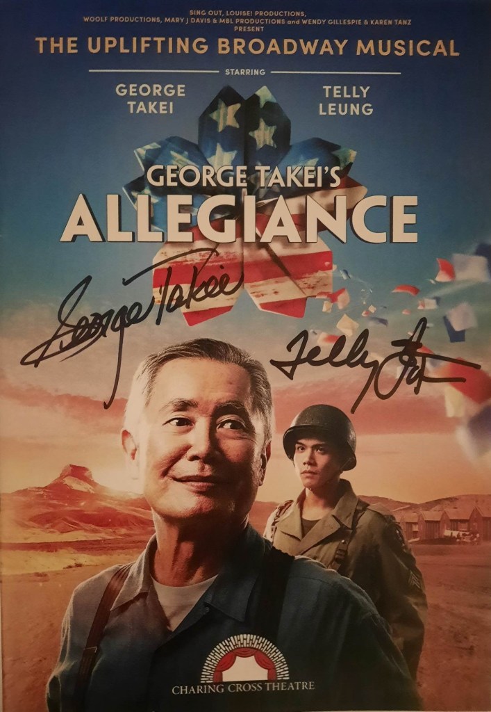 The other thing I wanted to write about today was going to see the musical George Takei’s Allegiance yesterday in London. Tabby and I saw George Takei talking about the musical while we were at Wales Comic Con last year, and Tabby said instantly that she wanted to go. So that was her Christmas present sorted. The musical is inspired by the internment camps that Japanese Americans were placed in after Pearl Harbour during WW2. It’s a really dark piece of American history. George Takei spent his childhood in one of the camps, and he’s spent a lot of time bringing awareness to what happened, and the musical is another part of that. The story is fictional, but it’s inspired by true events. It’s definitely strange to tell such a dark and sad story as a musical, but it does really work. It’s just as uplifting as it is sad and I did enjoy it a lot.